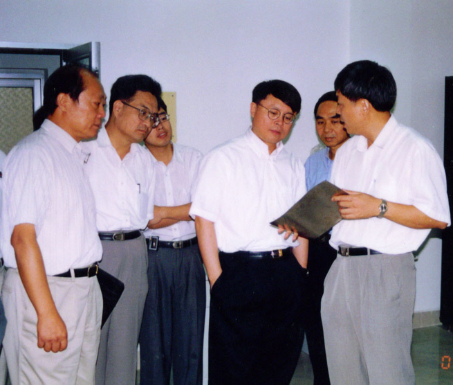 2000年時任中國科學(xué)院副院長江綿恒到廣州電子所視察。