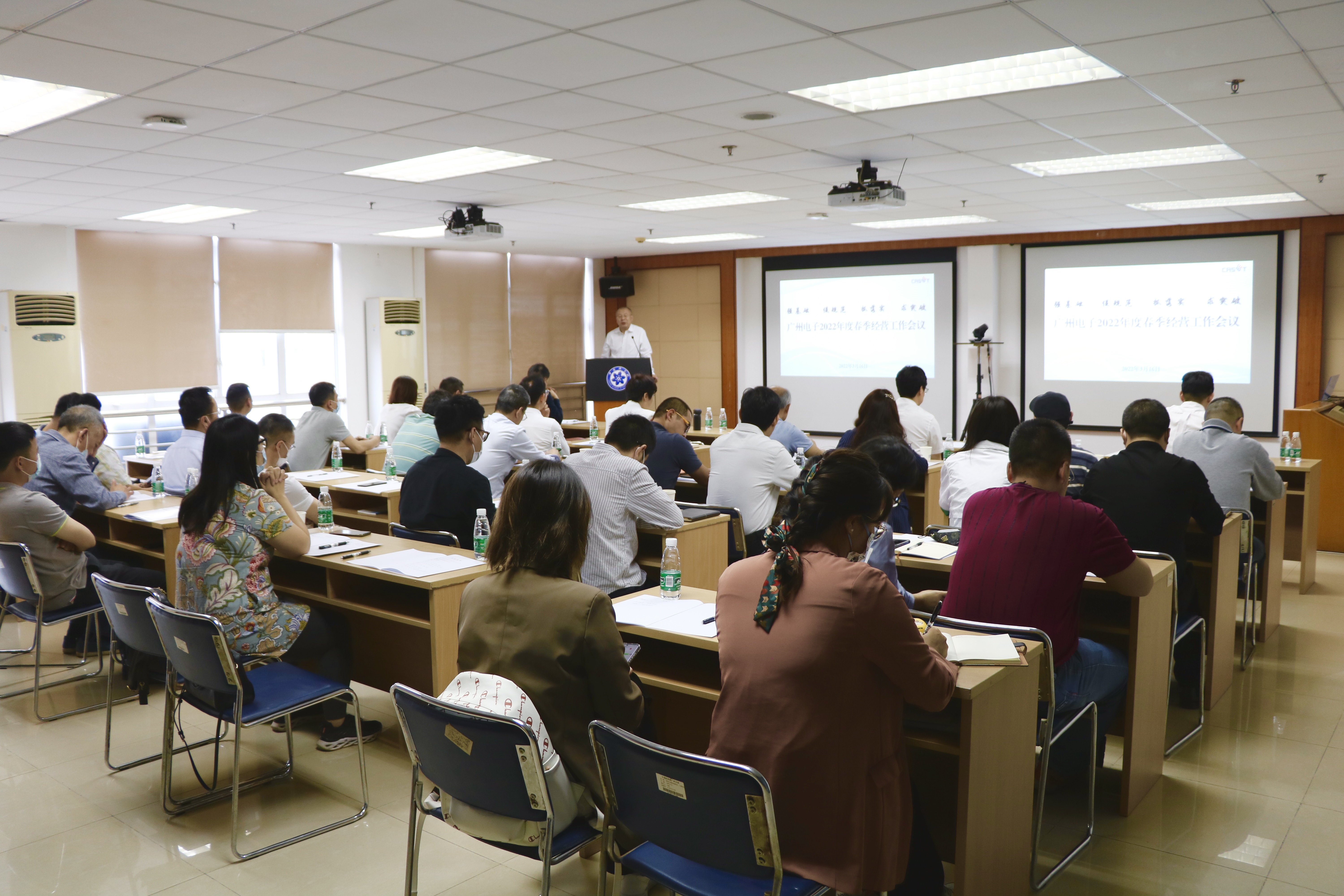 會上,公司各部門全面回顧了2021年度工作開展情況,并圍繞會議主題匯報了2022年度工作計劃??偨浝硇鞈c峰作《總經理經營工作報告》,報告全面總結了廣州電子2021年度經營狀況、部署了2022年度經營工作安排和下達了年度經營目標要求。他強調,各部門要對2022年度各項工作任務做到知責于心、擔責于身、履責于行,并緊密圍繞年度經營目標任務鉚足干勁狠抓落實,為全面完成年度目標任務、實現(xiàn)公司高質量發(fā)展新突破不懈奮斗。
